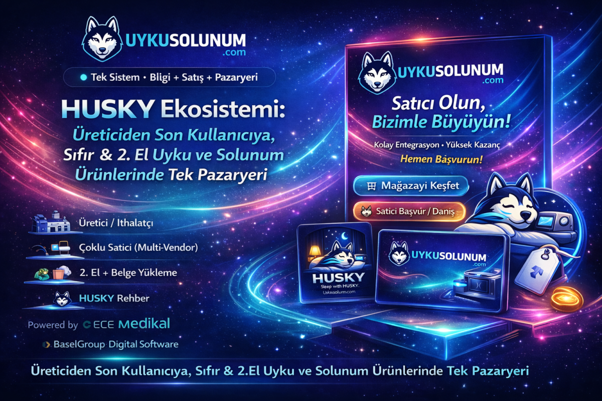 Uyku apnesi terapisi için CPAP ekosistemi: cihaz, maske, sarf & hijyen. Hızlıca kategoriye gir veya Husky’ye sor.
